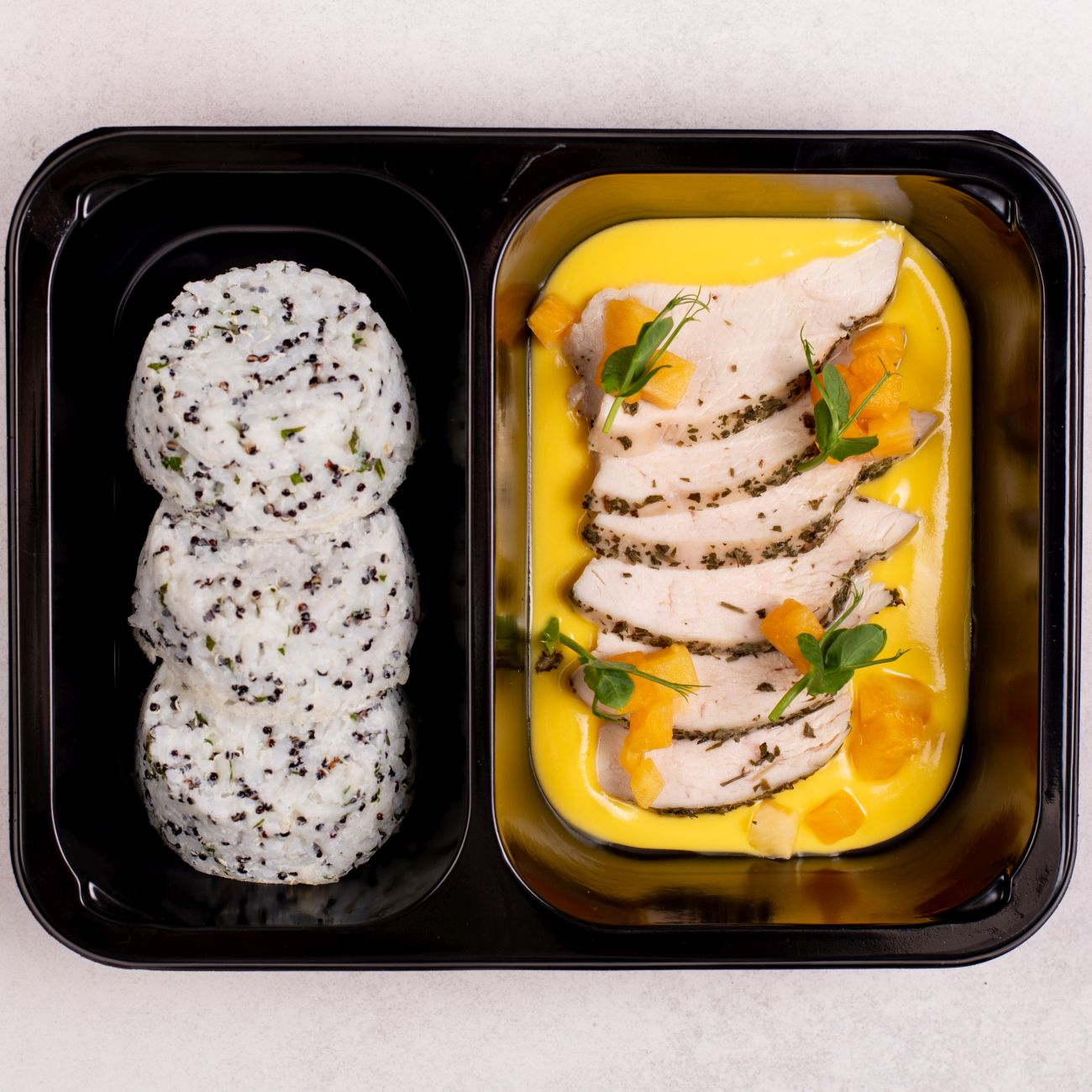 Kuřecí kousky v dýňové omáčce, rýžovo-quinoové muffiny