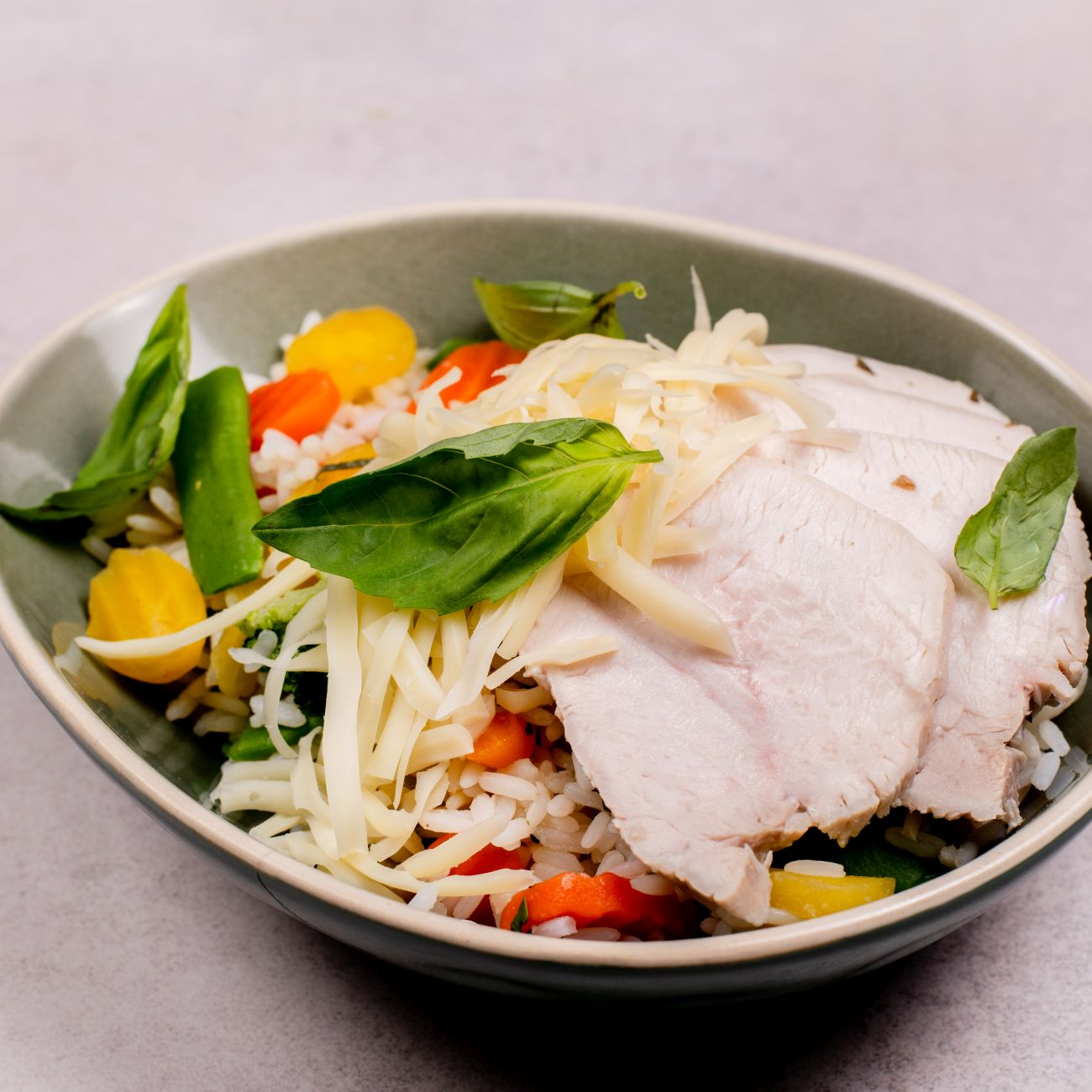 Rizoto s krůtím masem, zeleninou a sýrem